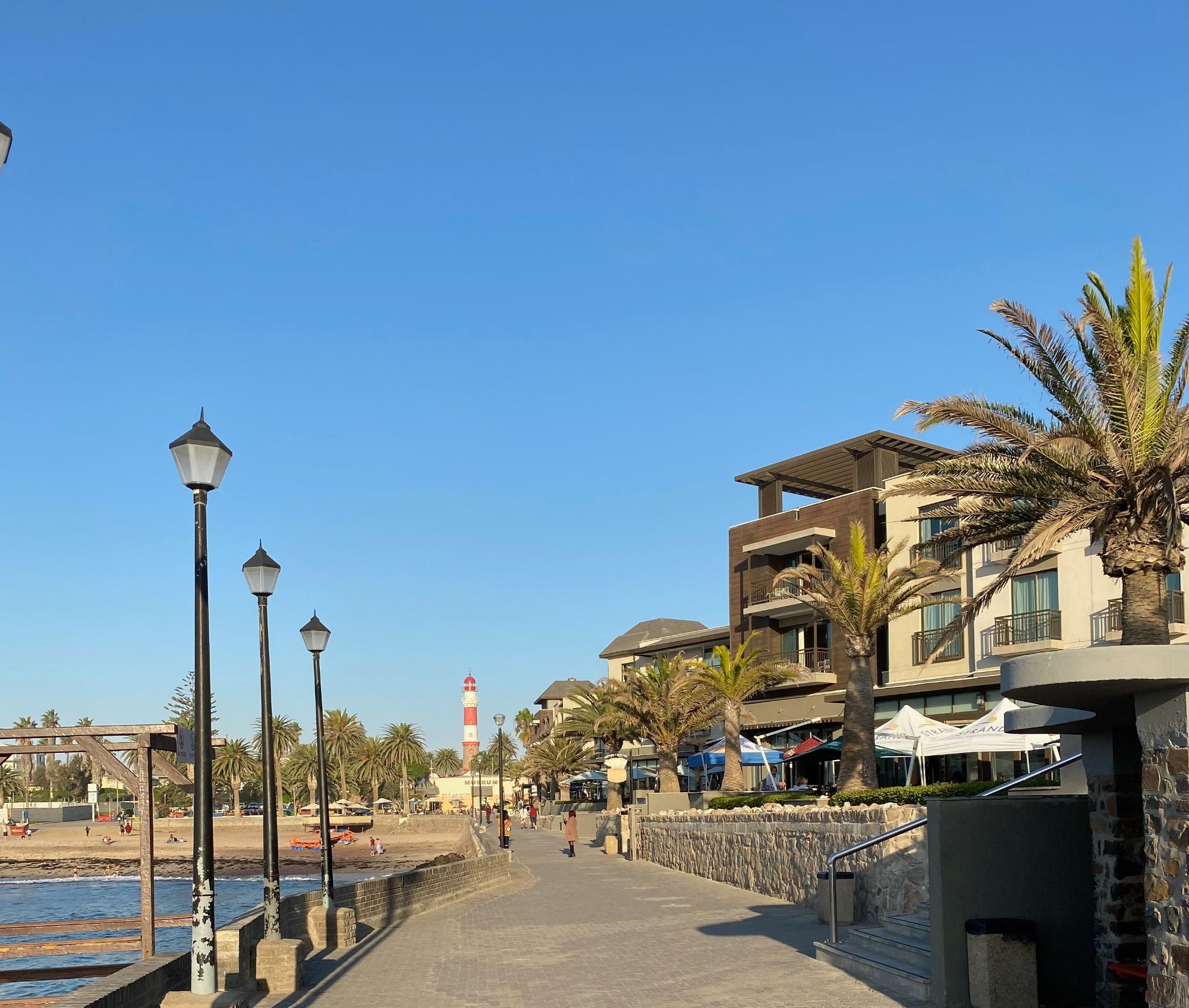 In der schönen Stadt bleiben wir ein paar Tage in einem Apartment direkt am Meer zum Entspannen, Wäsche waschen und Essen gehen. Von unserer großen Terrasse aus sehen wir nicht nur täglich einen farbenfrohen Sonnenuntergang, sondern können auch Delfine beobachten. Jeden Abend gehen wir in ein anderes Lokal und testen uns durch die Spezialitäten des Landes. Auch füllen wir unsere Vorräte beim deutschen Bäcker und beim besten Schlachter der Stadt auf. Leckere Oryx-, Springbok- und Kudu-Steaks wandern neben Biltong und Rokvleis in unseren Kühlschrank.