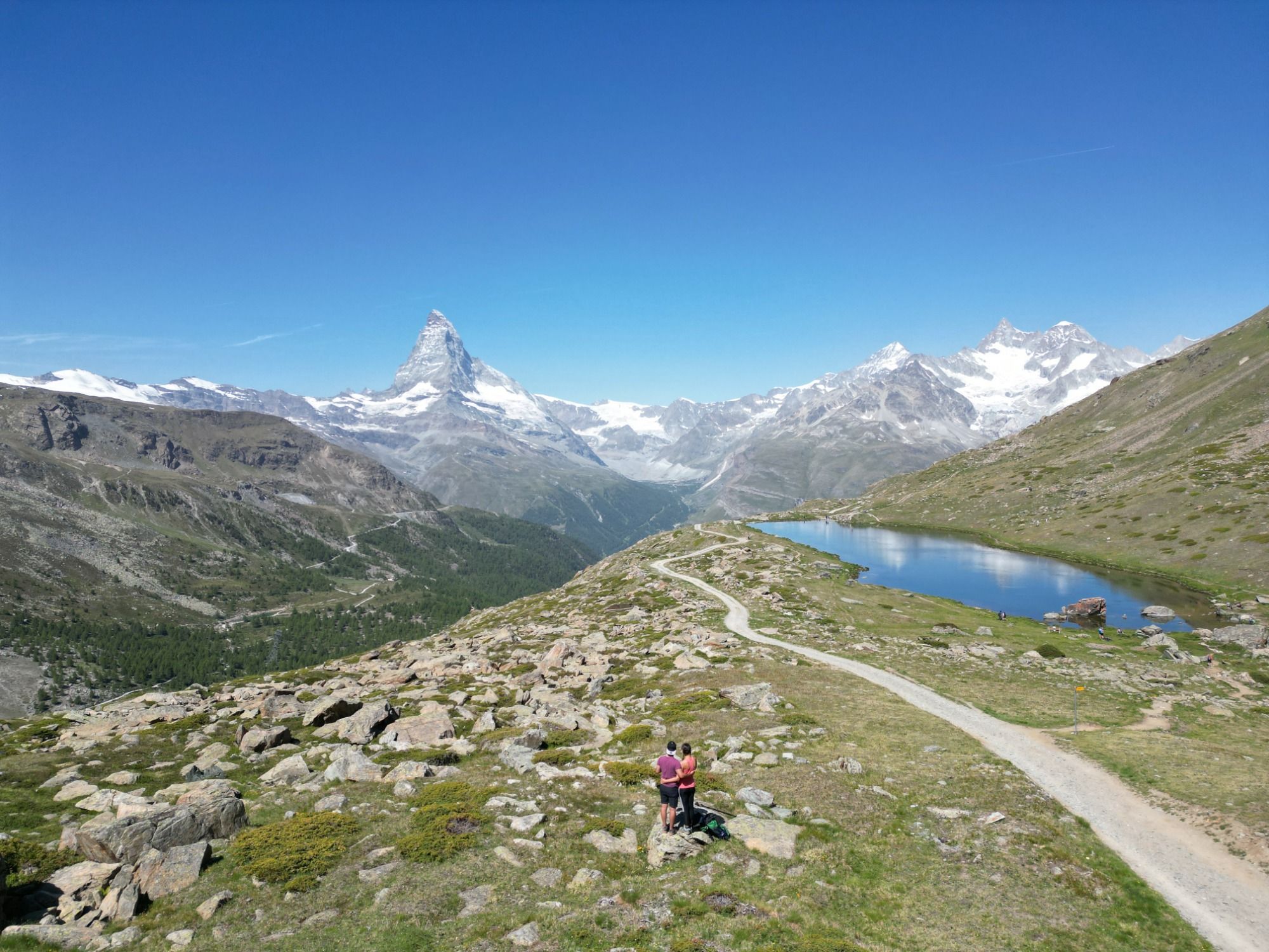 Und wieder steht ein Highlight an: das Matterhorn. Wir besteigen zwar nicht direkt den Berg mit der markanten Gestalt, aber wir machen eine Wanderung, bei der wir das Schweizer Wahrzeichen immer im Blick haben. Per Zahnradbahn geht es von der autofreien Stadt Zermatt zunächst nach Sunegga, wo man bereits einen tollen Blick auf das Matterhorn hat. Die Seilbahn bringt uns dann noch ein Stückchen höher zur Bergstation Blauherd. Ab hier wandern wir über einen Trampelpfad zuerst zum Stellisee, wo man die perfekte Matterhorn-Spiegelung genießen kann. Über die Fluhalp geht es weiter, bevor wir einen kurzen Umweg über den steilen Moränenkamm nehmen, sodass wir eine atemberaubende Aussicht Richtung Matterhorn haben. Es folgt eine Picknickpause am Grindjisee, eine Abkühlung am Grünsee und ein Stopp am türkisen Mosjesee, bevor wir den vier Kilometer langen Abstieg nach Zermatt antreten.