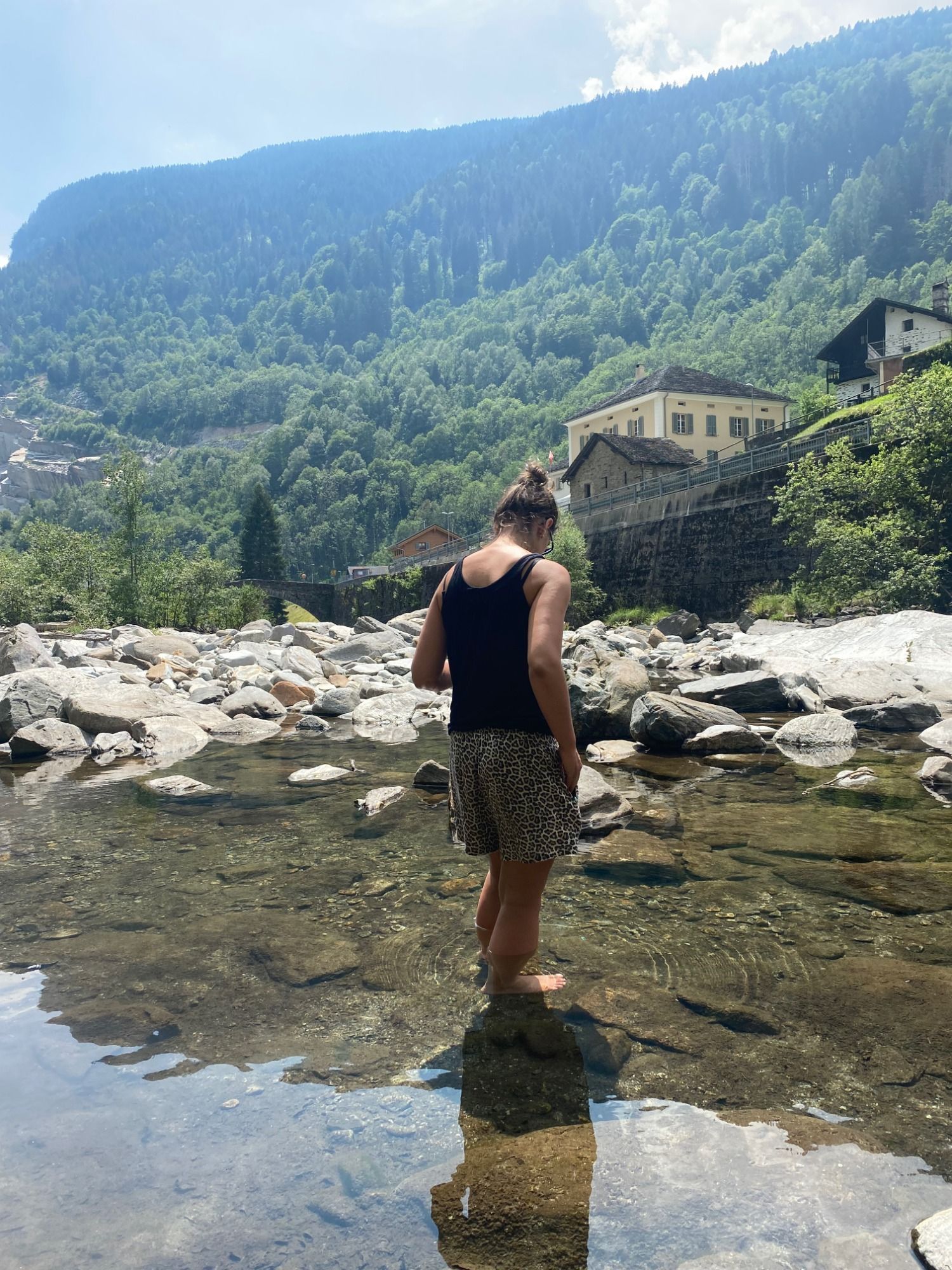 Einen kleinen Abstecher machen wir ins beschauliche Calancatal, welches noch zum Kanton Graubünden gehört. Hier kühlen wir unsere Füße im kalten Fluss ab, bevor es weiter ins Verzascatal, eines der schönen Tessiner Täler, geht. An der berühmten Fußgängerbrücke `Ponte dei Salti´ mit ihren zwei Steinbögen beobachten wir die mutigen Brückenspringer.