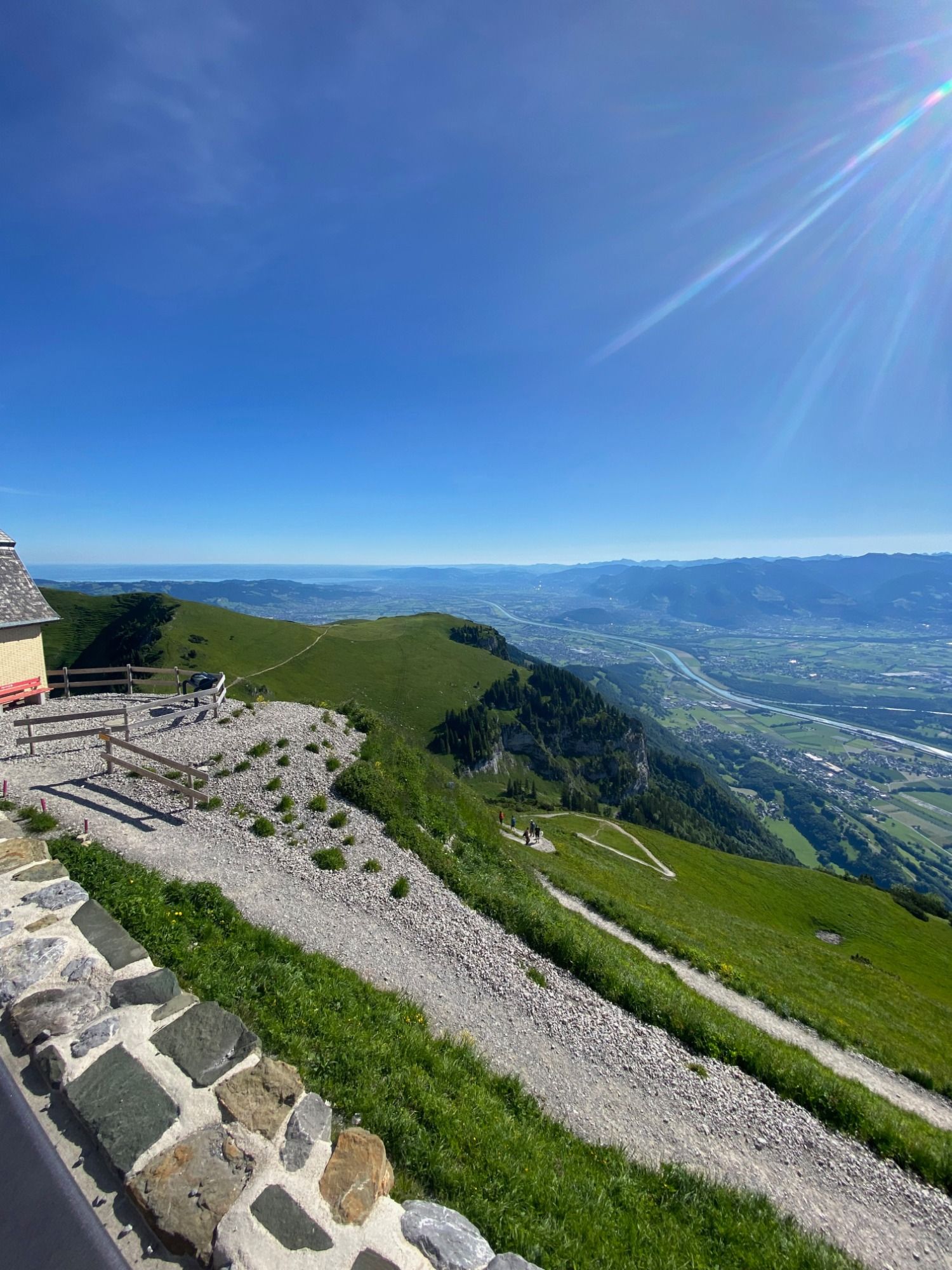 Ein besonderes Highlight steht tagsdarauf an: eine Gratwanderung. Per Seilbahn geht es morgens auf den Ostschweizer Aussichtsberg `Hoher Kasten´. Von hier bietet sich ein fantastisches Panorama über die Schweizer Alpen bis nach Österreich, Liechtenstein und Deutschland. Der abwechslungsreiche Weg führt fast 5 Kilometer entlang zum Staubern. Ab hier beginnt unser Abstieg zum Sämtisersee. Das Bad im kalten Bergsee erfrischt die müden Beine. Weitere, teilweise steile Kilometer folgen bis zum Camper an der Talstation, wo wir uns nach der Tagestour erholen.