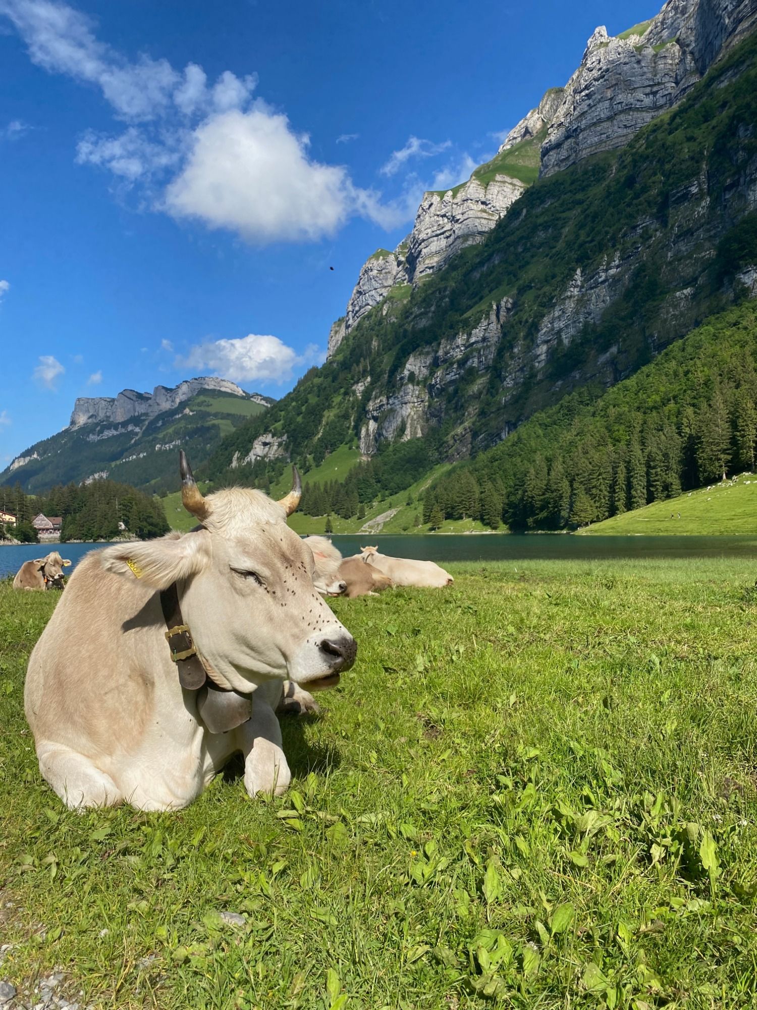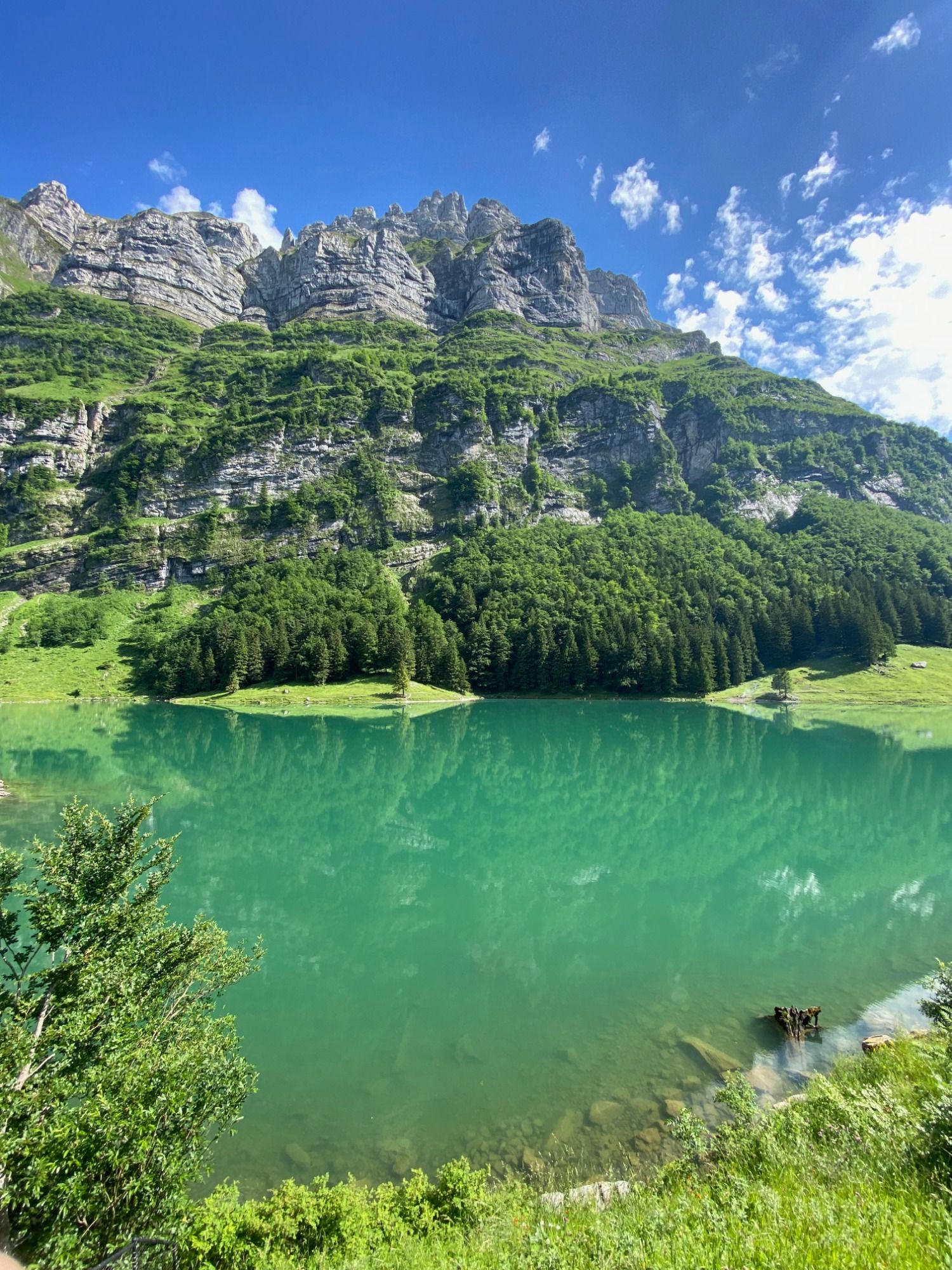 Ein weiteres tolles Erlebnis bietet sich gleich am nächsten Tag: die Wanderung vom Wildkirchli zum Seealpsee. Mit der Ebenalpbahn geht es zuerst hoch hinaus und dann zu Fuß durch die prähistorische Wildkirchli-Höhle mit ihren uralten Höhlenbärenknochen zum berühmten Berggasthaus Äscher-Wildkirchli, welches sich am Felsen festzuklammern scheint. Der sehr steile Abstieg zum Seealpsee beginnt direkt nach dem weltweit bekannten Wirtshaus. Am herrlichen schimmernden, glasklaren See machen wir ein kleines Picknick, bevor wir den Bergsee einmal umrunden.
