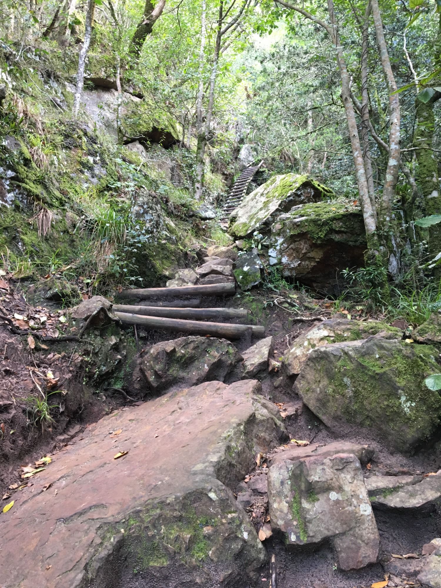 Der botanische Garten auf der Rückseite des Tafelbergs zählt zu den schönsten der Welt. Wir schlendern durch die abwechslungsreiche Pflanzenwelt, genießen die Sonne auf dem Baumwipfelpfad und begeben uns dann zum Startpunkt des Skeleton Gorge Trails. Dieser Weg auf den Tafelberg startet direkt im botanischen Garten und pünktlich um 12 Uhr laufen wir auf eigene Faust los.