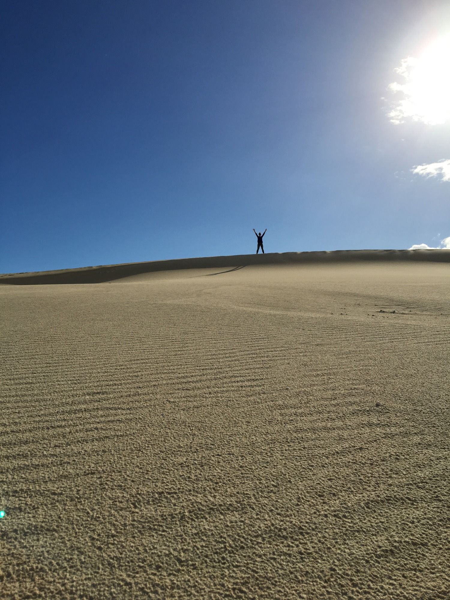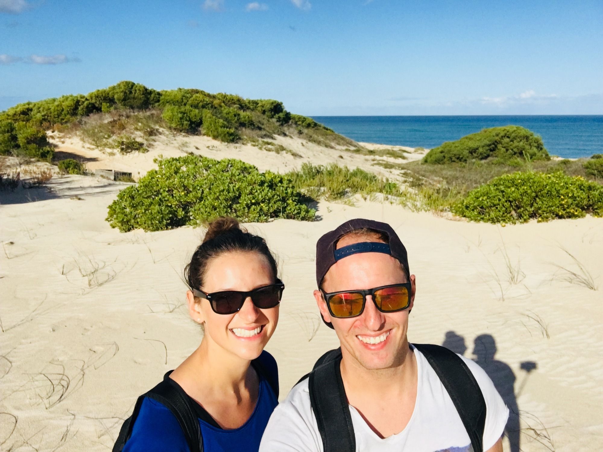 Auf Empfehlung unseres letzten Vermieters machen wir in Aniston Halt und wandern durch die Dünenlandschaft. Wir können uns an den Farbkontrasten kaum sattsehen und sammeln einzigartige Muscheln als Erinnerungsstücke. Auf der kompletten Tour durch diese schöne Kulisse am Meer entlang sind nur unsere eigenen Fußspuren im Sand zu sehen.
