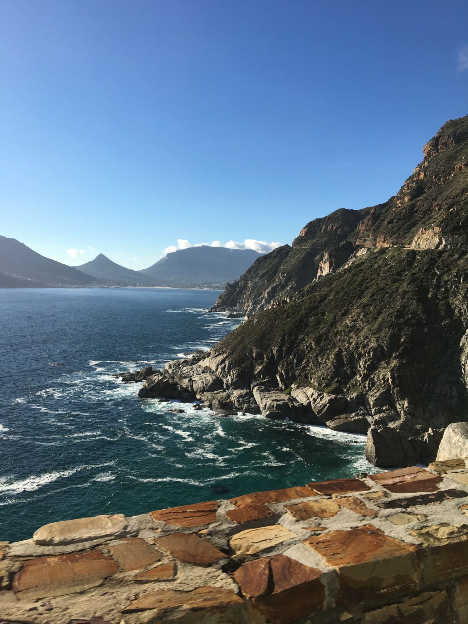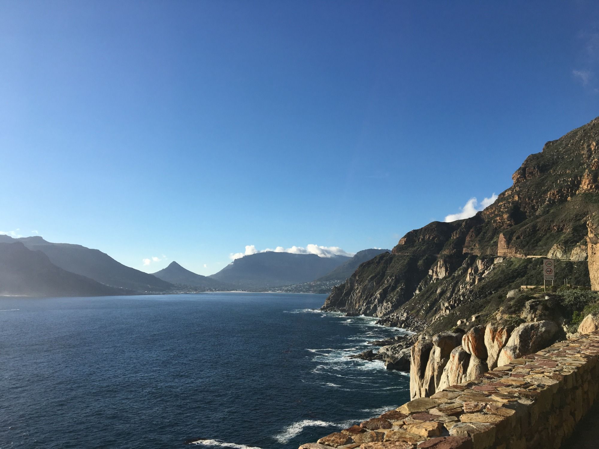 Der Chapman's Peak Drive zählt zu den eindrucksvollsten Straßen Südafrikas. Diese gebührenpflichtige Küstenstraße auf der Kap-Halbinsel ist neun Kilometer lang, schlängelt sich in 114 Kurven unmittelbar zwischen Meer und steilen Felswänden entlang und bietet spektakuläre Ausblicke an kleinen Aussichtspunkten. Wir fahren diese Straße sogar extra an zwei verschiedenen Tagen ab, weil sie uns so beeindruckt.