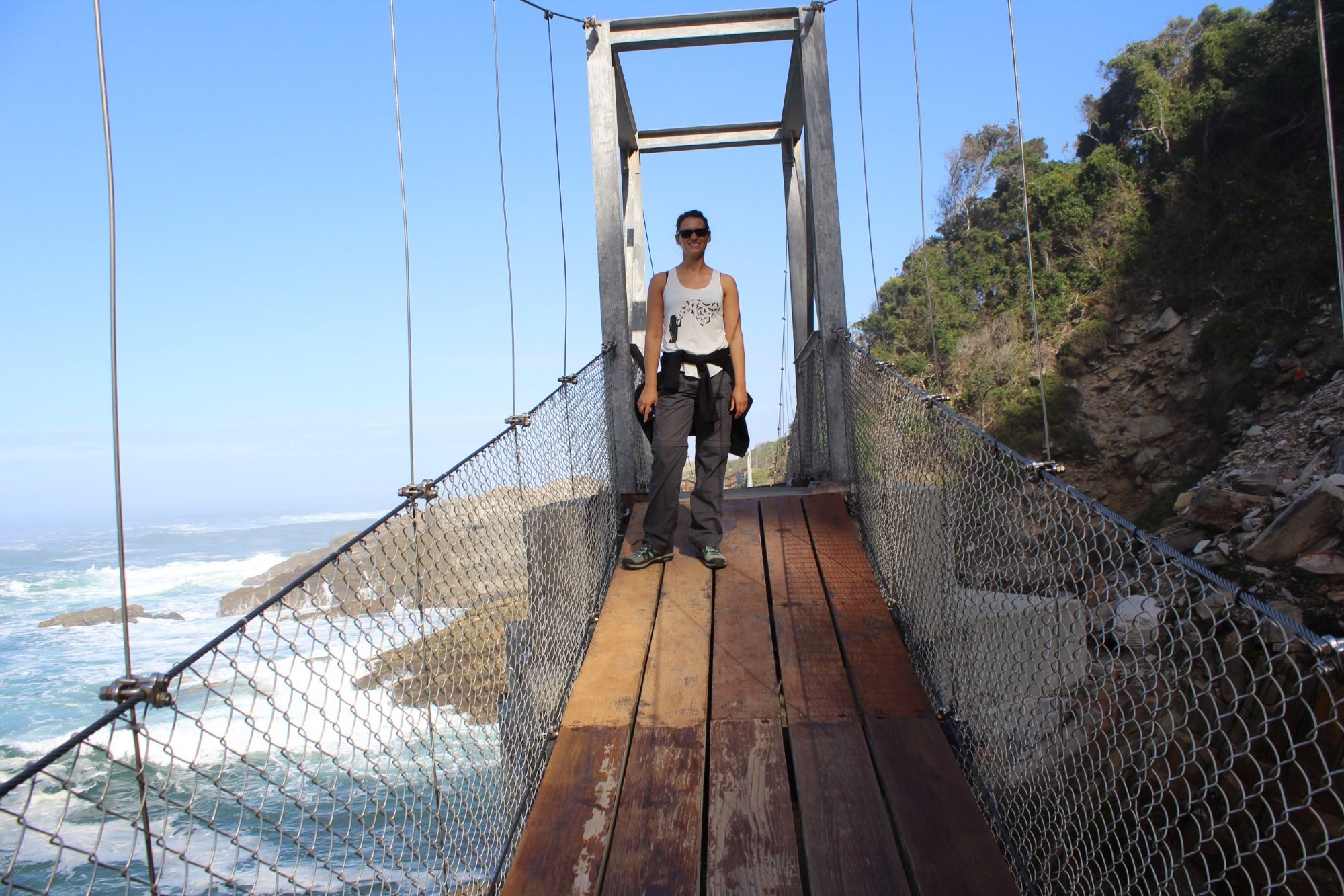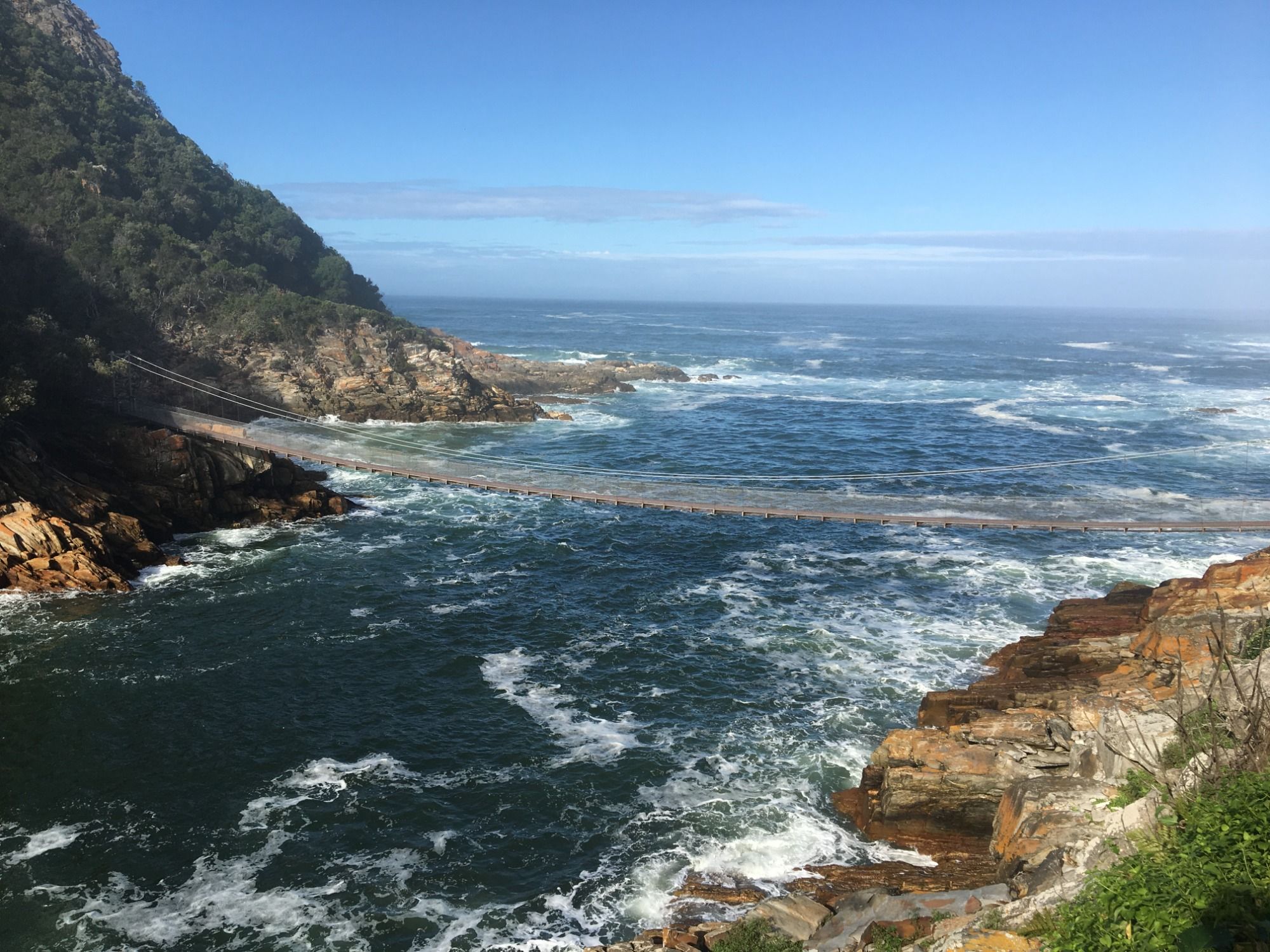 Bei Stormsriver besuchen wir im Yellowwood den Big Tree, einen besonders hohen alten Baum, und die Bloukrans Bridge, von der man den höchsten Bungee-Sprung der Welt wagen kann. Im Tsitsikamma Nationalpark wandern wir zur Suspension Bridge, die Hängebrücke über die Mündung des Storm Rivers. Hier beobachten wir Robben in den Wellen unter uns.